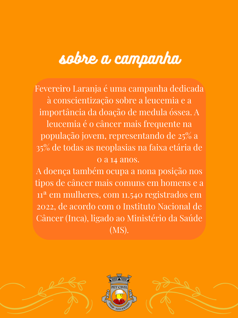 Fevereiro Laranja é uma campanha de conscientização sobre a prevenção e o combate à leucemia, destacando a importância do diagnóstico precoce e do tratamento adequado. A iniciativa também reforça a relevância da doação de medula óssea, um gesto de solidariedade que pode salvar vidas. Informar-se, compartilhar conhecimento e apoiar essa causa são atitudes essenciais para levar esperança a quem enfrenta a doença.